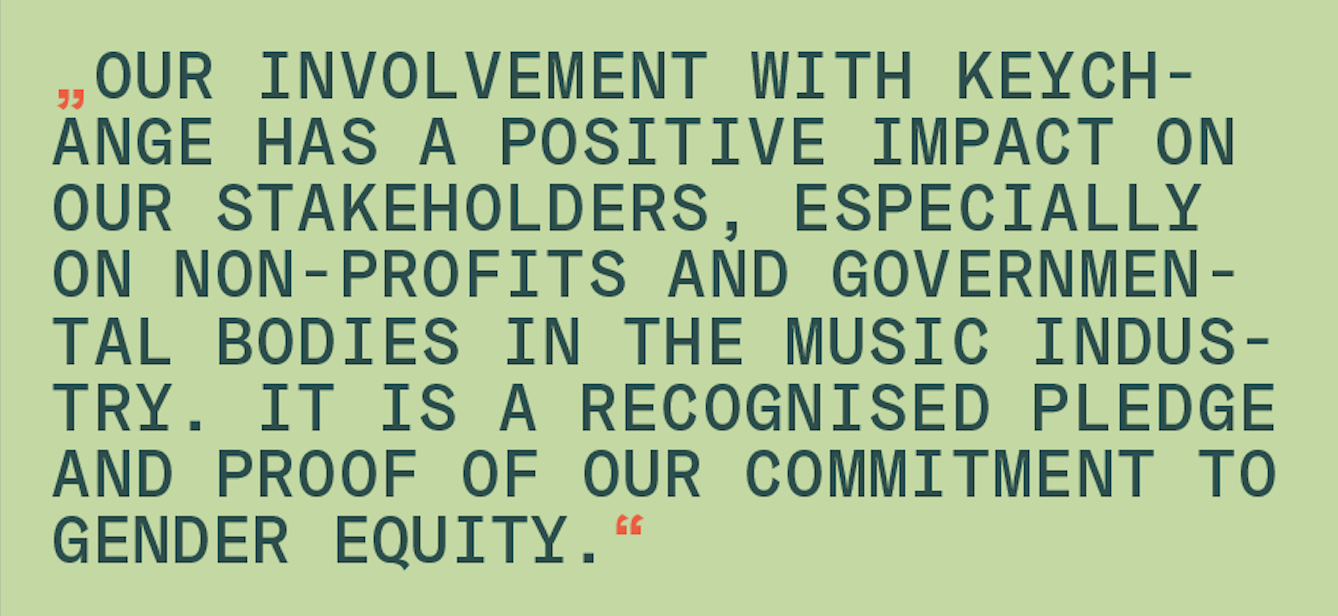 Keychange aims to accelerate change and create a more inclusive music industry for present and future generations and encourages all music organisations to take the Keychange Pledge in order to achieve a more inclusive and equitable music industry. Join the Keychange Pledge at https://www.keychange.eu/the-keychange-pledge
